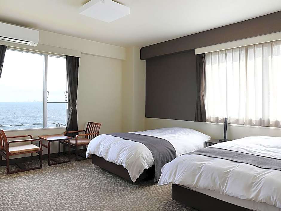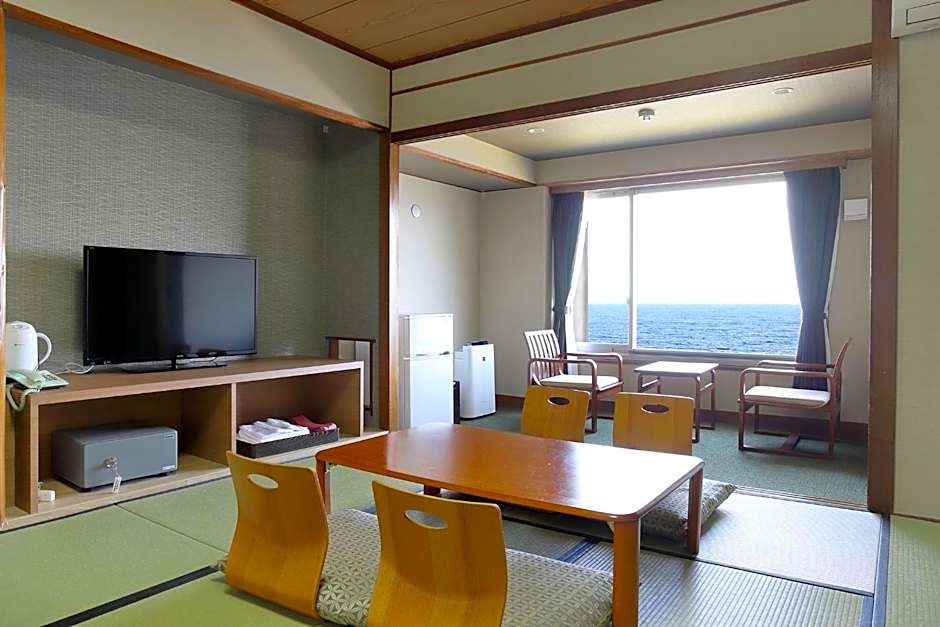 The quadruple room features a shared bathroom equipped with a hairdryer and slippers. The air-conditioned quadruple room offers a flat-screen TV, tatami, a safe deposit box, heating as well as sea views. The unit offers 5 futons.