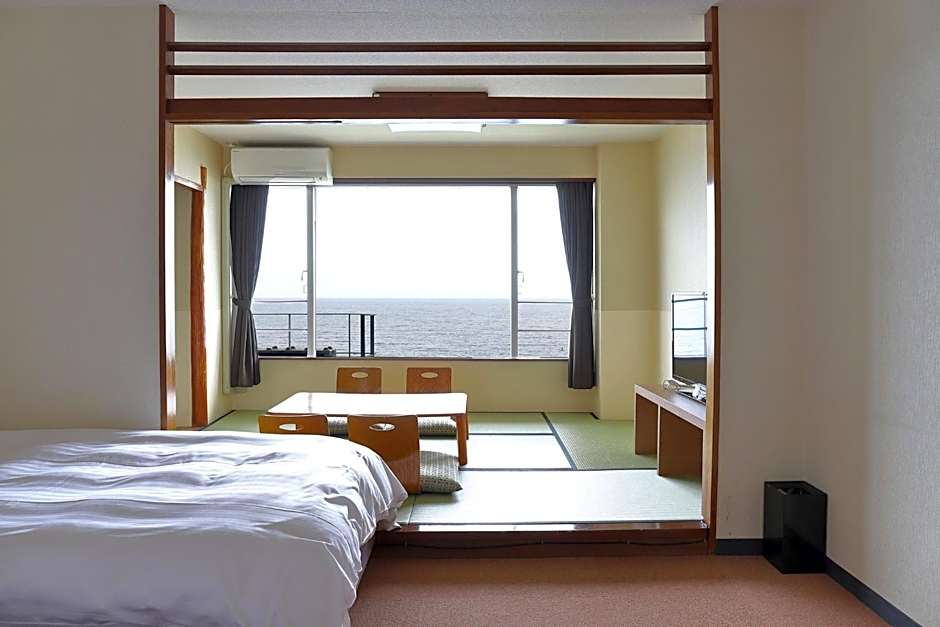 The spacious quadruple room features air conditioning, tatami, as well as a private bathroom boasting a bath and a shower. The quadruple room offers a safe deposit box, a carpeted floor, heating, a flat-screen TV, as well as sea views. The unit has 2 beds and 2 futons.